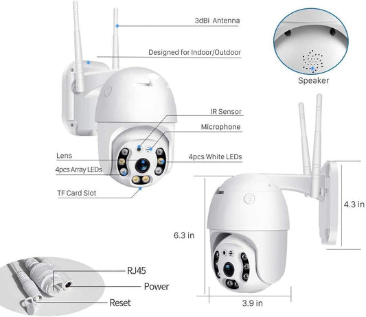 TELECAMERA IP DUE ANTENNE CAMERA HD 720P WIRELESS LED IR LAN MOTORIZZATA WIFI